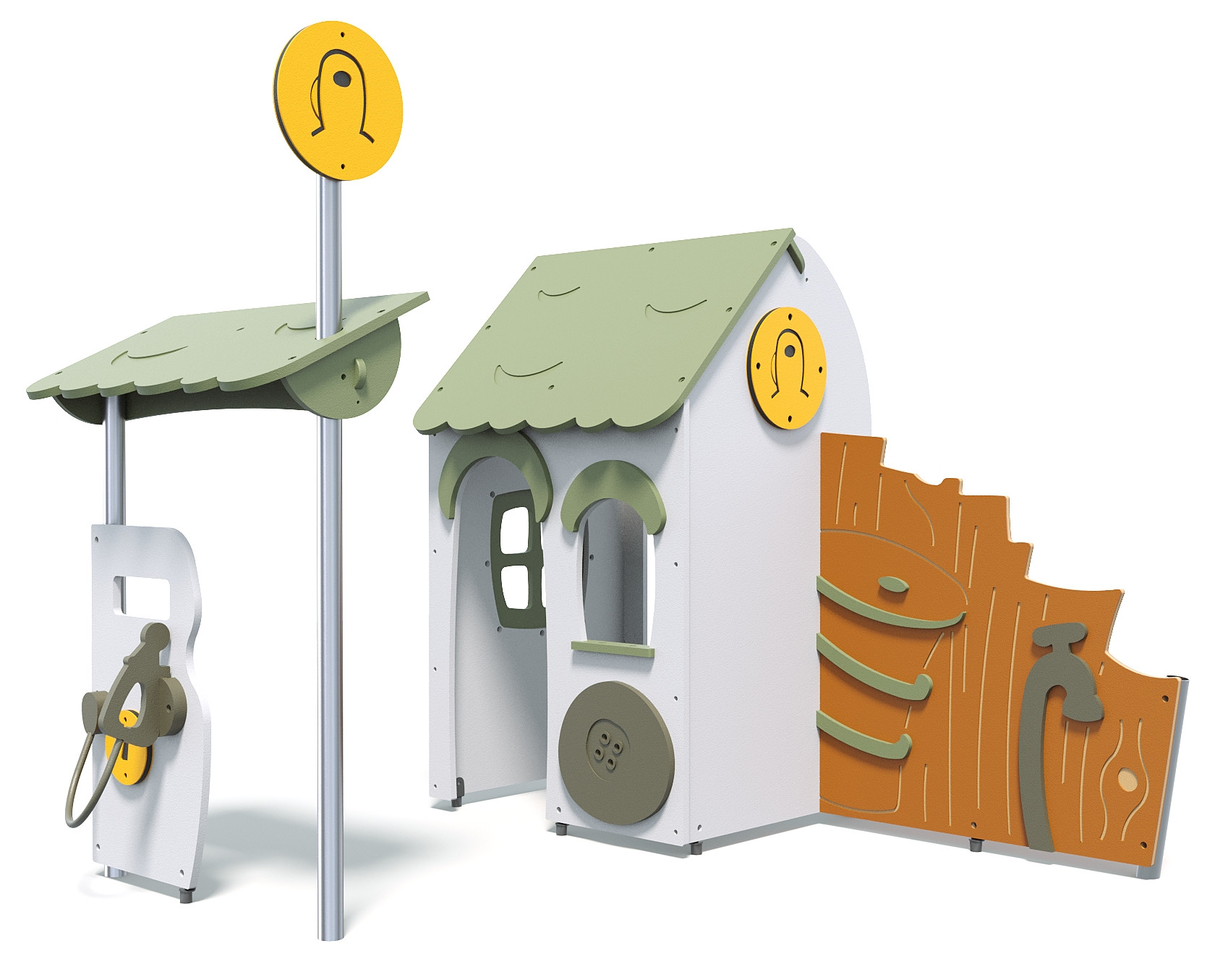 Our Moduplay town designs offer inclusive and accessible play options. Equipment is located on the ground level so children of all abilities can enjoy imaginative play in outdoor spaces together, without having to climb for access. Choosing Moduplay town and play huts means investing in quality, creative play that encourages collaboration and fun!