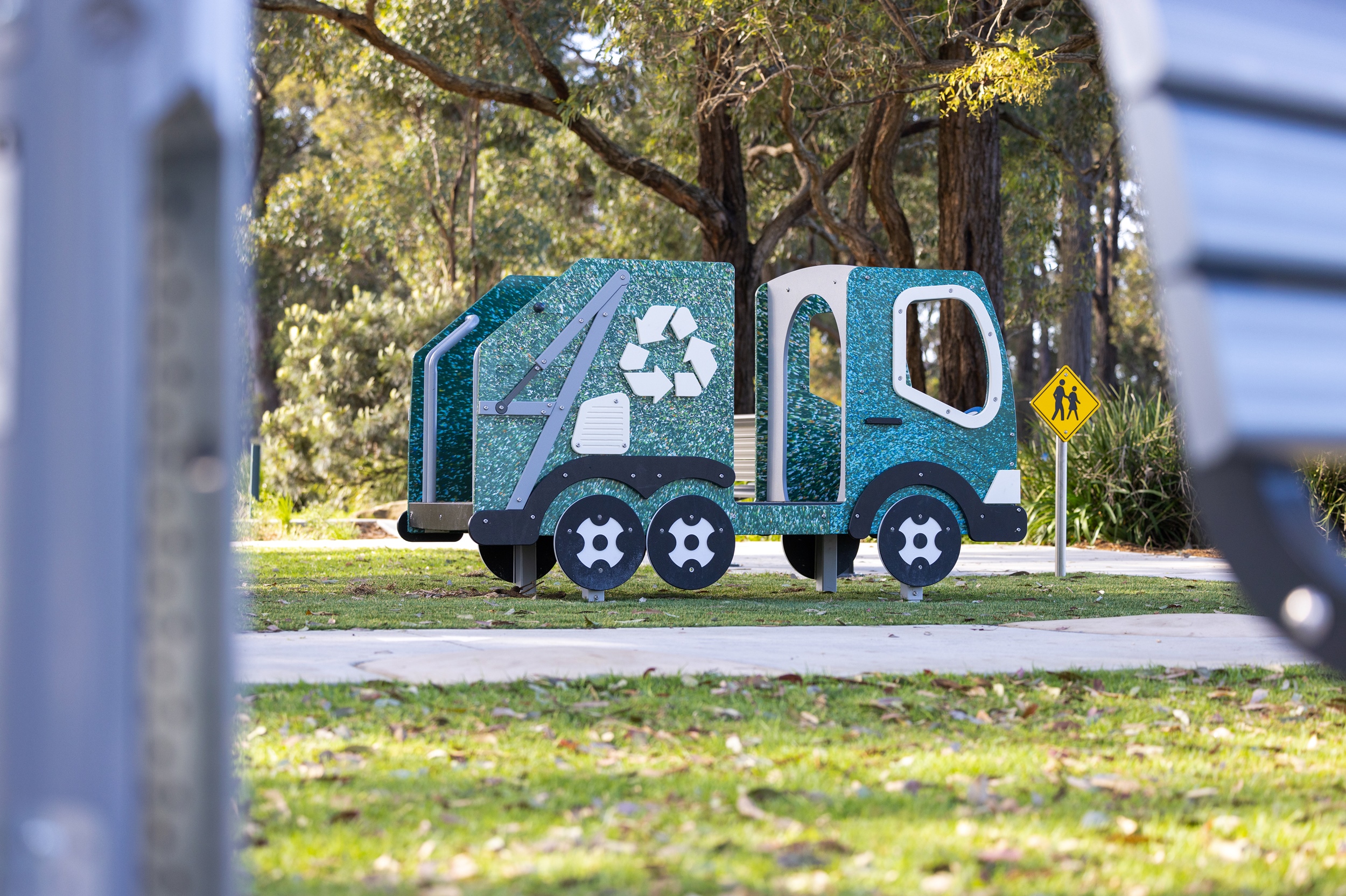 Appin Park uses theme as an educational tool, with a recycled recyling truck that children instantly recognise. The familiar form opens natural conversations about waste and sustainability.