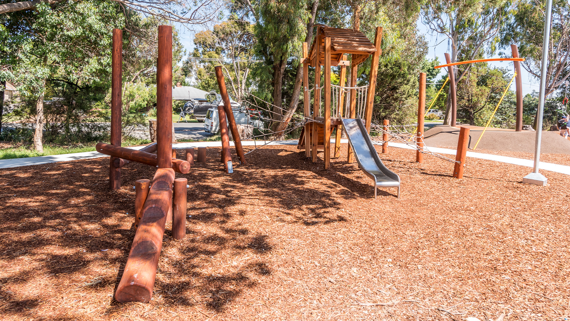 Bushwood can also be complemented with recycled playground equipment or timber swings, giving clients the flexibility to design cohesive, nature-inspired play spaces.