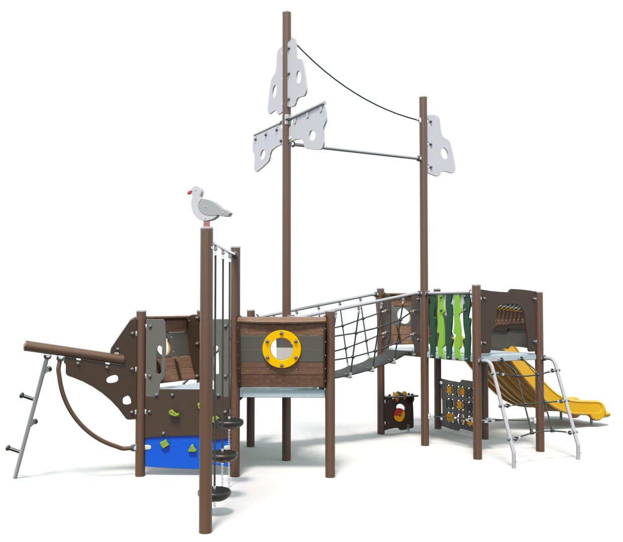 Ahoy mateys, Boatswain has set sail! Scale the rigging, brave the rope bridge and shoot down the slide into uncharted waters before taking command at the captains panel. On this ship, the little pirates are always in command.
