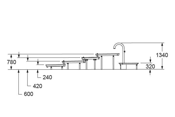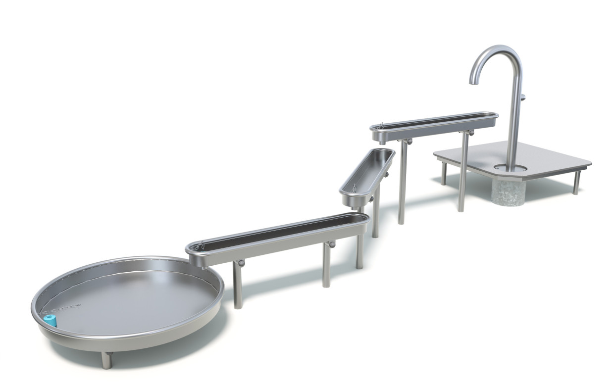 Featuring a push-button tap, Cascade sends water down a series of levels before landing in the tray. All sections have a plug where water can gather before reaching it’s destination point.