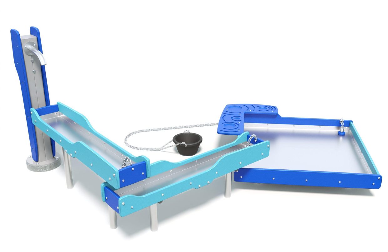 Dartmouth features a right-angle water stream leading into the well, with a bucket included for scooping, pouring and sand and water play. A timed push button is located on the back of the tap for controlled water flow.