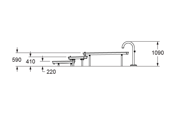 Featuring a simple push-button tap, River guides water down a path with a drop guiding down to the second path. Below is a large, round sand and water tray.